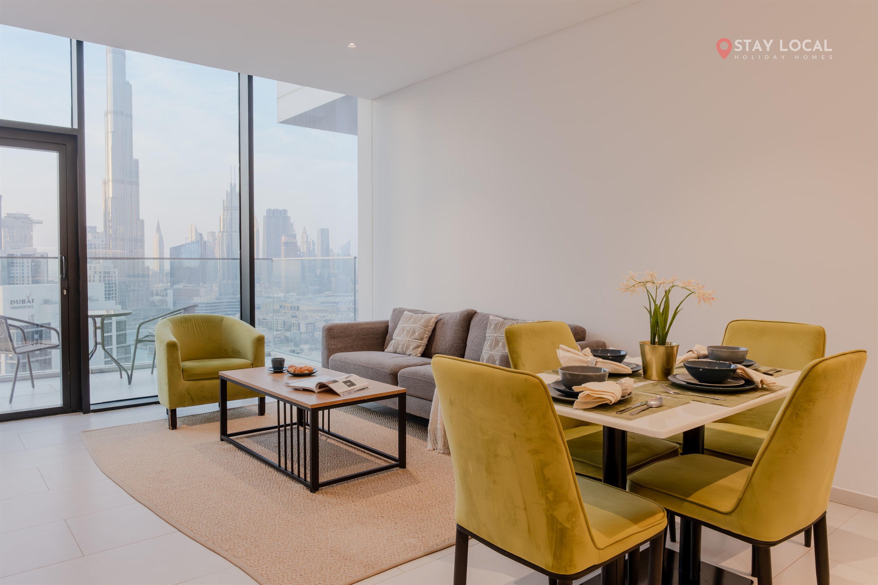 2 Bedrooms • 3 Bathrooms (2 full, 1 half) 3 Baths (2 full, 1 half) • Sleeps 1-4Situated at heart of Down Town, it offers an unobstructed view of the Burj Khalifa & Down Town. It offers the same view in the living room as well as in both bedrooms. And just 1.9 km away from Burj Khalifa, The Dubai Fountain & The Dubai Mall.
